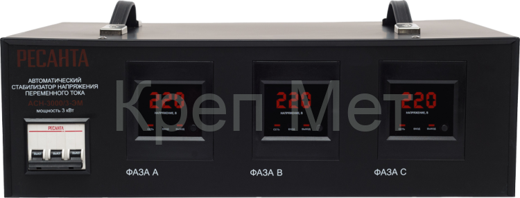 - Стабилизатор напряжения Ресанта АСН-3000/3-ЭМ