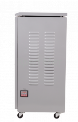 Модель оснащена системой принудительного охлаждения для стабильной работы под нагрузкой до 44А на фазу. Прочный корпус с защитой IP20 и транспортировочные колеса делают эксплуатацию удобной даже в жестких промышленных условиях.