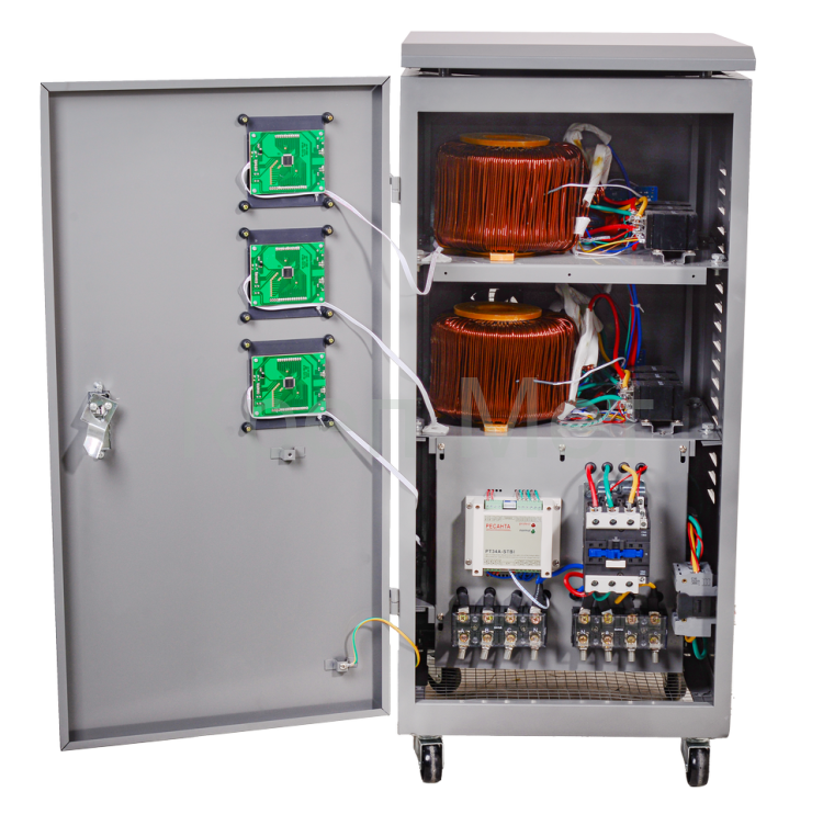 Стабилизатор напряжения Ресанта АСН-30000/3-Ц релейного типа разработан для надежной защиты промышленного и офисного оборудования мощностью до 30 кВт. Это мощное решение для стабилизации трехфазного напряжения 380 В с точностью ±8%, обеспечивающее безопасную работу производственных линий, серверного оборудования и других критически важных систем.