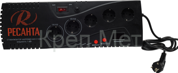 Стабилизатор напряжения Ресанта С1000 выравнивает входное напряжение сети и защищает подключенную бытовую технику от его перепадов. Этот компактный аппарат обеспечивает стабильность электропитания бытовых устройств общей мощностью до 1 кВт, работая в диапазоне напряжений от 140 до 260 В.