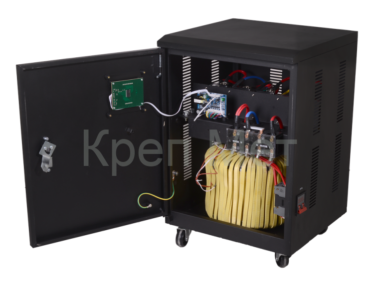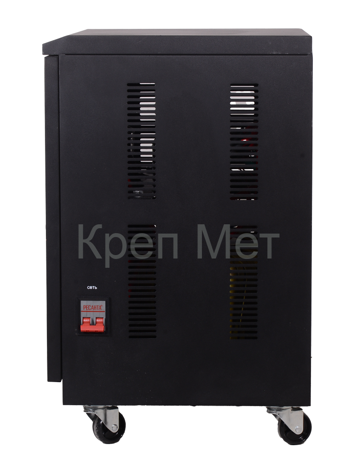 Встроенный LED-дисплей чётко отражает текущие значения входного и выходного напряжения, позволяя контролировать состояние сети. Металлический корпус надёжно защищает внутренние схемы от физических повреждений и агрессивных воздействий извне. Принудительная система охлаждения с вентиляторами поддерживает оптимальную температуру и предотвращает перегрев устройства даже при интенсивной эксплуатации. Стабилизатор размещается на полу, что позволяет свободно выбирать место установки.