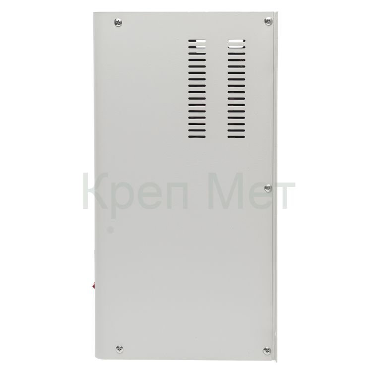 Прочный металлический корпус обеспечивает надежную защиту внутренних компонентов. Благодаря компактным размерам и специальной конструкции корпуса, устройство удобно размещается на стене, экономя полезное пространство. Информативный LCD-дисплей отображает все ключевые параметры работы: значения входного и выходного напряжения, состояние защитных систем.