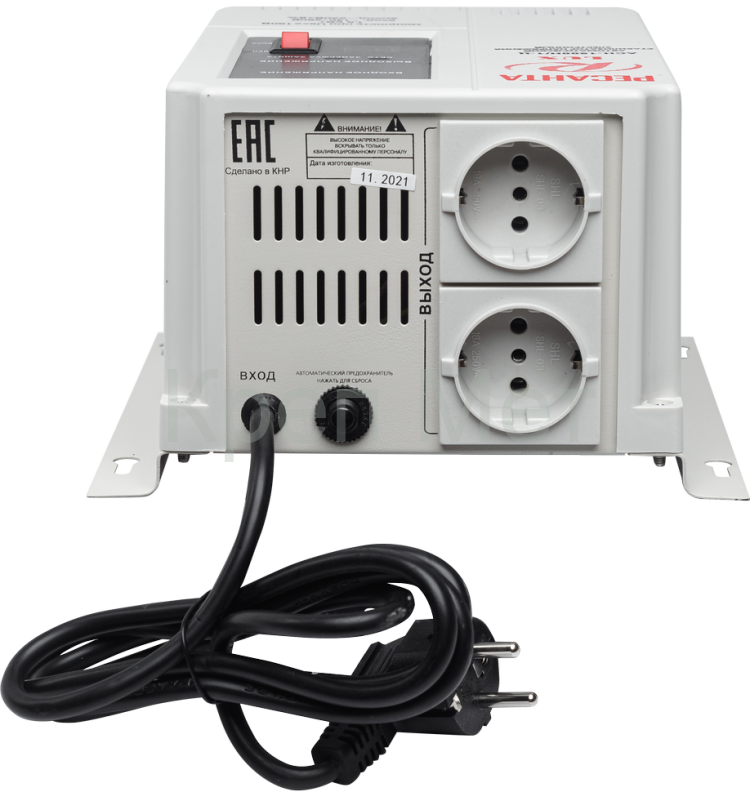 Стабилизатор оборудован двумя стандартными электрическими розетками и разработан таким образом, чтобы его можно было закрепить на вертикальную поверхность стены, что позволит комфортно расположить его в любом помещении. Корпус выполнен из качественных материалов, обладающих высокой прочностью и соответствующей степенью защиты IP20. Естественная система вентиляции способствует постоянному поддержанию оптимальной температуры внутри корпуса.