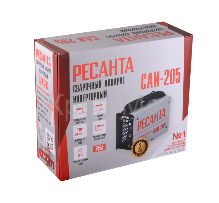 Сварочный аппарат инверторный Ресанта САИ 205 — современный инверторный сварочный аппарат, разработанный для профессиональной ручной дуговой сварки (режим ММА). В основе устройства лежат передовые IGBT-транзисторы, обеспечивающие надёжность и продолжительный срок службы оборудования.