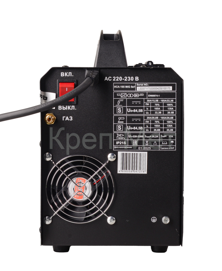 Полуавтомат ИСА-165 MIG Вихрь может работать от стандартной бытовой электросети напряжением 220–230 В даже при значительных колебаниях напряжения (в пределах 155–280 В), что делает его подходящим для использования как в городских условиях, так и на объектах с нестабильным энергоснабжением.