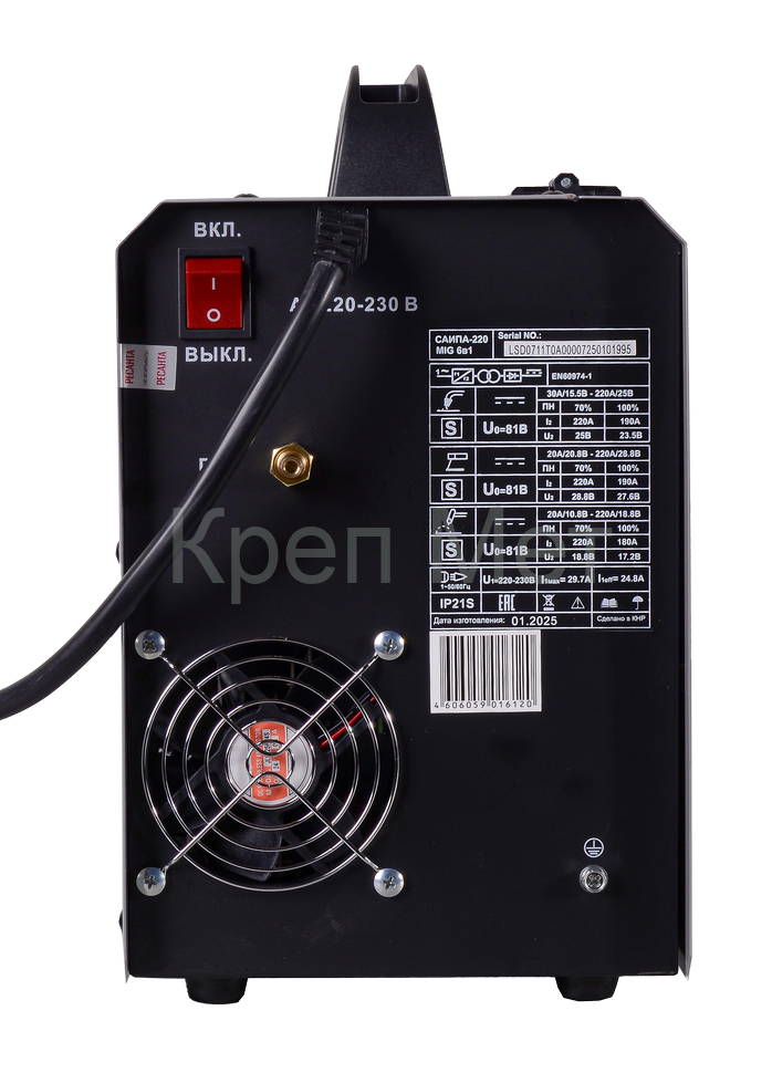 Предусмотрена вентиляционная система охлаждения и регулировки настроек сварочного тока и скорости подачи проволоки в зависимости от характеристик обрабатываемого металла.