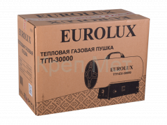 Газовая теплопушка Eurolux ТГП-EU-30000 используется на строительных площадках и в производственных цехах площадью до 100 м?. Мощность 30 кВт позволяет создавать воздушный поток производительностью 1000 м?/час. Для зажигания пьезоэлектрического элемента требуется подключение теплопушки к однофазной электросети. В качестве топлива используется пропан, пропан-бутан или бутан. За час непрерывной работы расходуется не более 2,18 кг. Газ подается под давлением 0,7 бар.