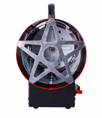 Модель работает на экологически чистом сжиженном газовом топливе, которое, попадая в специальную камеру сгорания, выделяет необходимое количество тепла. Полученная горячая атмосфера активно перемешивается мощным вентилятором, распределяющим теплые потоки по всей площади помещения. Энергоснабжение требуется только для запуска вентилятора и работы автоматики, необходимой для безопасной эксплуатации.