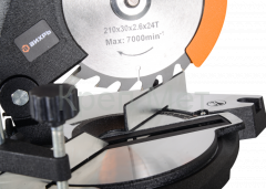 Мощный двигатель на 1500 Вт позволяет легко справляться даже с плотными древесными материалами, обеспечивая стабильную работу под нагрузкой. Средний диаметр диска 210 мм дает позволяет работать с широкими заготовками и делать глубокие пропилы.