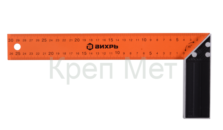 Угольник металлический ВИХРЬ применяется для разметки и проверки взаимной перпендикулярности поверхностей конструкций и деталей. Есть двухсторонняя измерительная шкала. Длина линейки: 30 см.