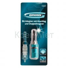Адаптер для бит с ограничителем и двойным магнитом, 1/4 Gross