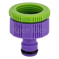 Пластмассовый адаптер Palisad 65740 с внутренней резьбой, подходит для кранов, распределителей, распылителей с резьбовыми соединениями диаметром 3/4 — 1 дюйм. Конструкцией предусмотрен переходник, позволяющий устанавливать изделие на выходы разного диаметра. Адаптер используют для подключения поливочной системы к источнику водоснабжения, поэтому он будет полезен на дачном участке.