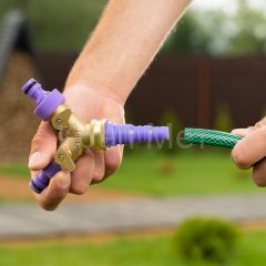 Пластмассовый адаптер Palisad 66180 с внешней резьбой 3/4 дюйма и переходным соединением интегрируется в поливочную линию для подключения к соединителю или разветвителю шланга диаметром 1/2 или 3/4 дюйма. Используется в ходе монтажа системы полива на дачном участке.