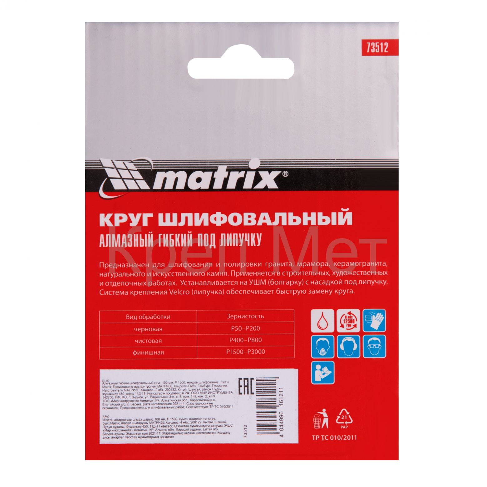 - Алмазный гибкий шлифовальный круг, 100 мм, P1500, мокрое шлифование, 5 шт. Matrix
