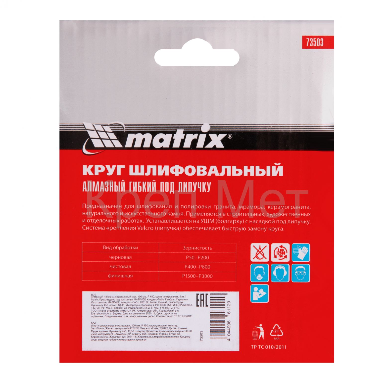 - Алмазный гибкий шлифовальный круг, 100 мм, P400, сухое шлифование, 5 шт. Matrix