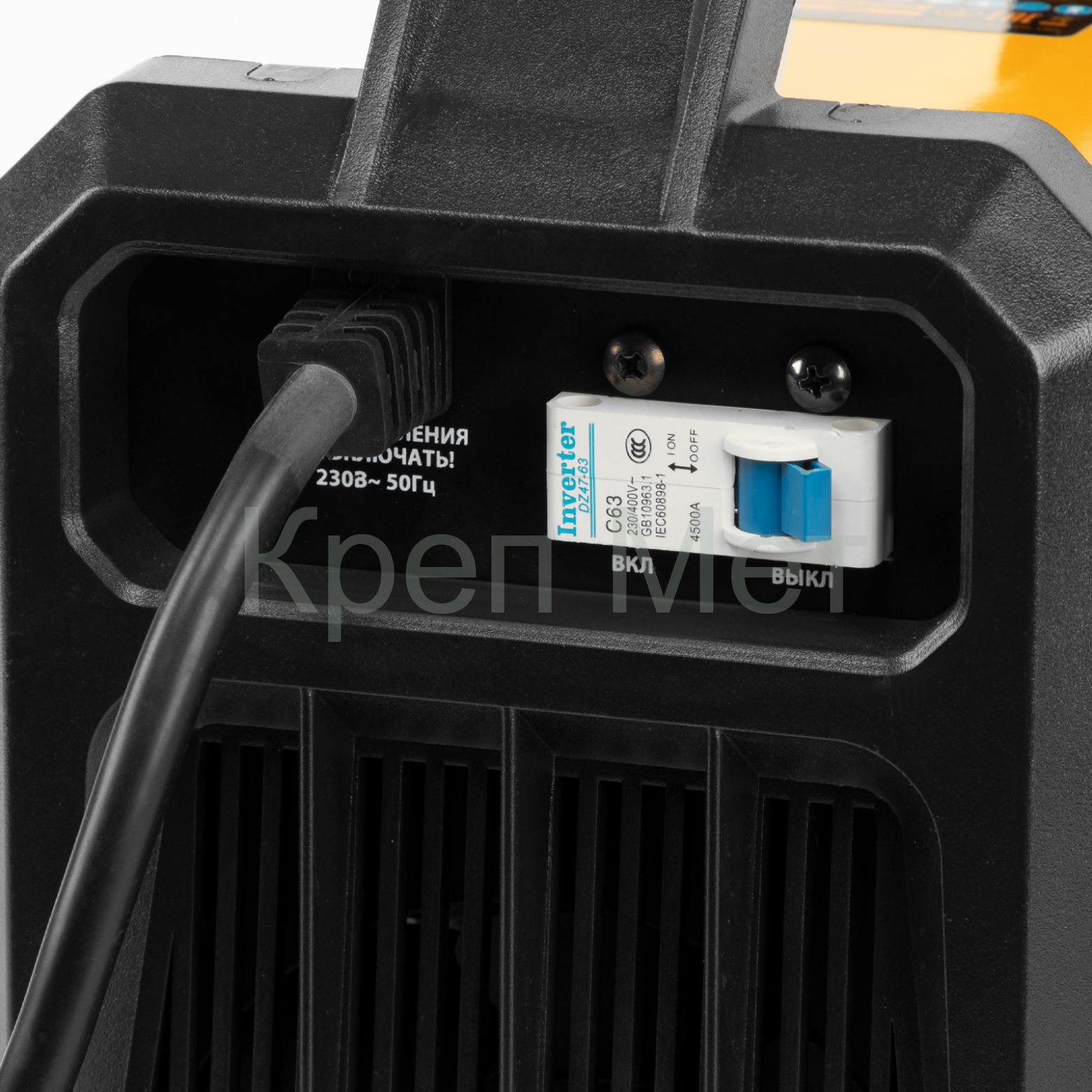 - Контроль рабочих параметров — на панели управления имеется цифровой дисплей, отображающий текущее значение сварочного тока.