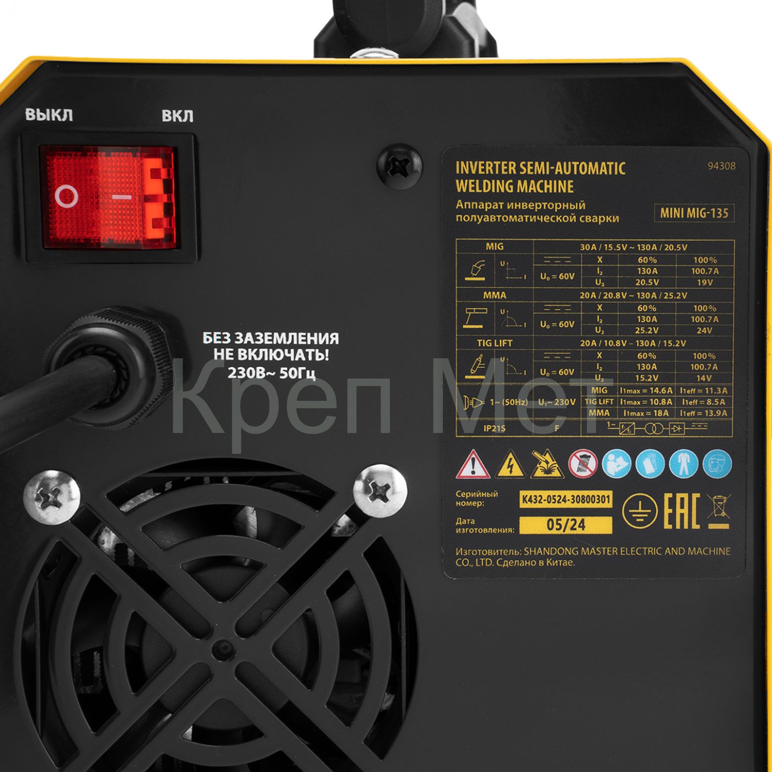 - Аппарат инвертор. полуавтомат. сварки Mini MIG-135, 130 А, ПВ 60%// Denzel