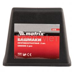 Противооткатные башмаки Matrix 56780 поставляются в комплекте из 2 шт. и предназначены для установки под колеса легкового автомобиля или прицепа. Башмаки, или упоры, не дают транспортному средству скатиться со склона или сместиться во время подъема на домкрате. Пригодятся автовладельцам, а также будут полезны мастерам по ремонту авто.
