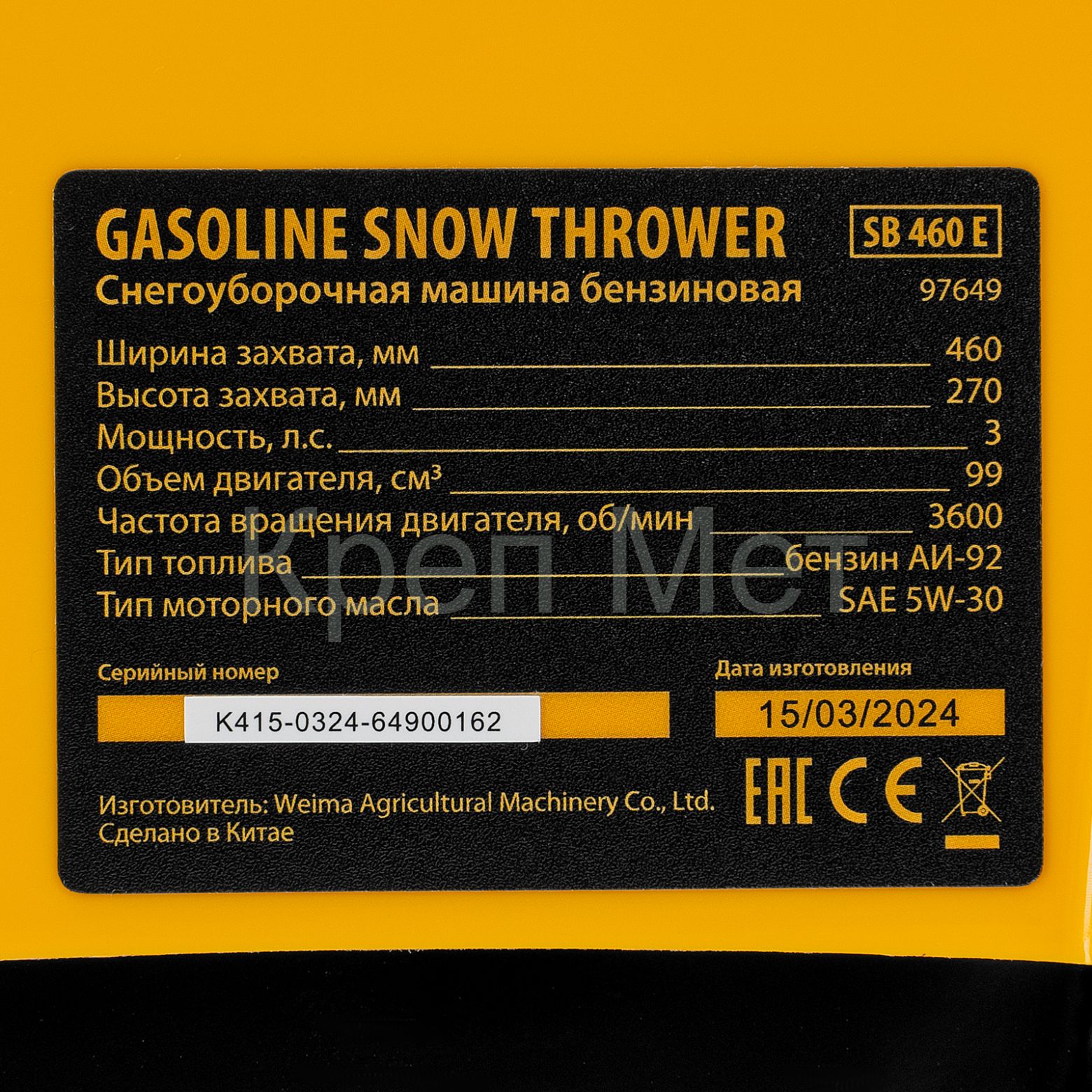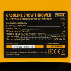 - Бензиновая снегоуборочная машина SB 460 E, 99cc, эл.старт, шнек SnowCrusher Denzel