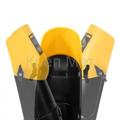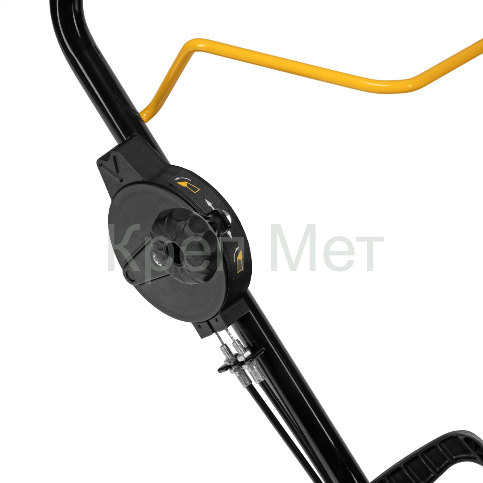 - Удобное управление — поворот желоба осуществляется при помощи тросового механизма, наклон дефлектора регулируется вручную.
