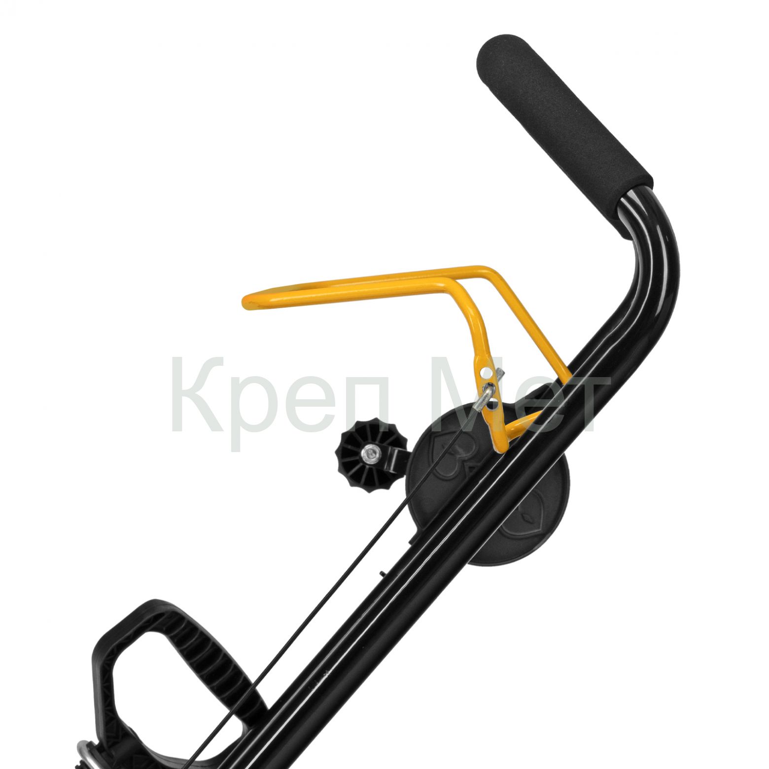 - Эргономичность — широкая рукоятка ручного старта облегчает запуск двигателя, для регулировки угла поворота желоба не нужно наклоняться.
