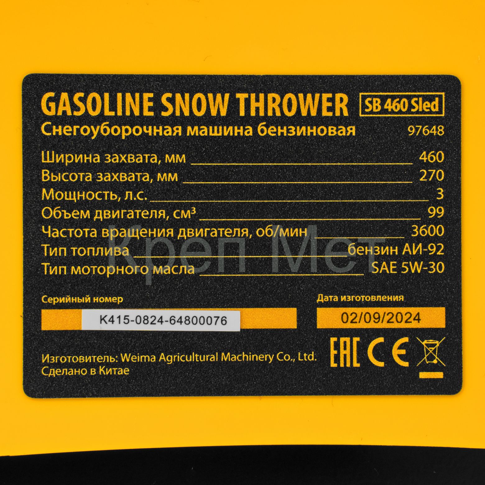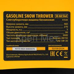 - Бензиновая снегоуборочная машина SB 460 Sled, 99cc, лыжи ручной старт// Denzel