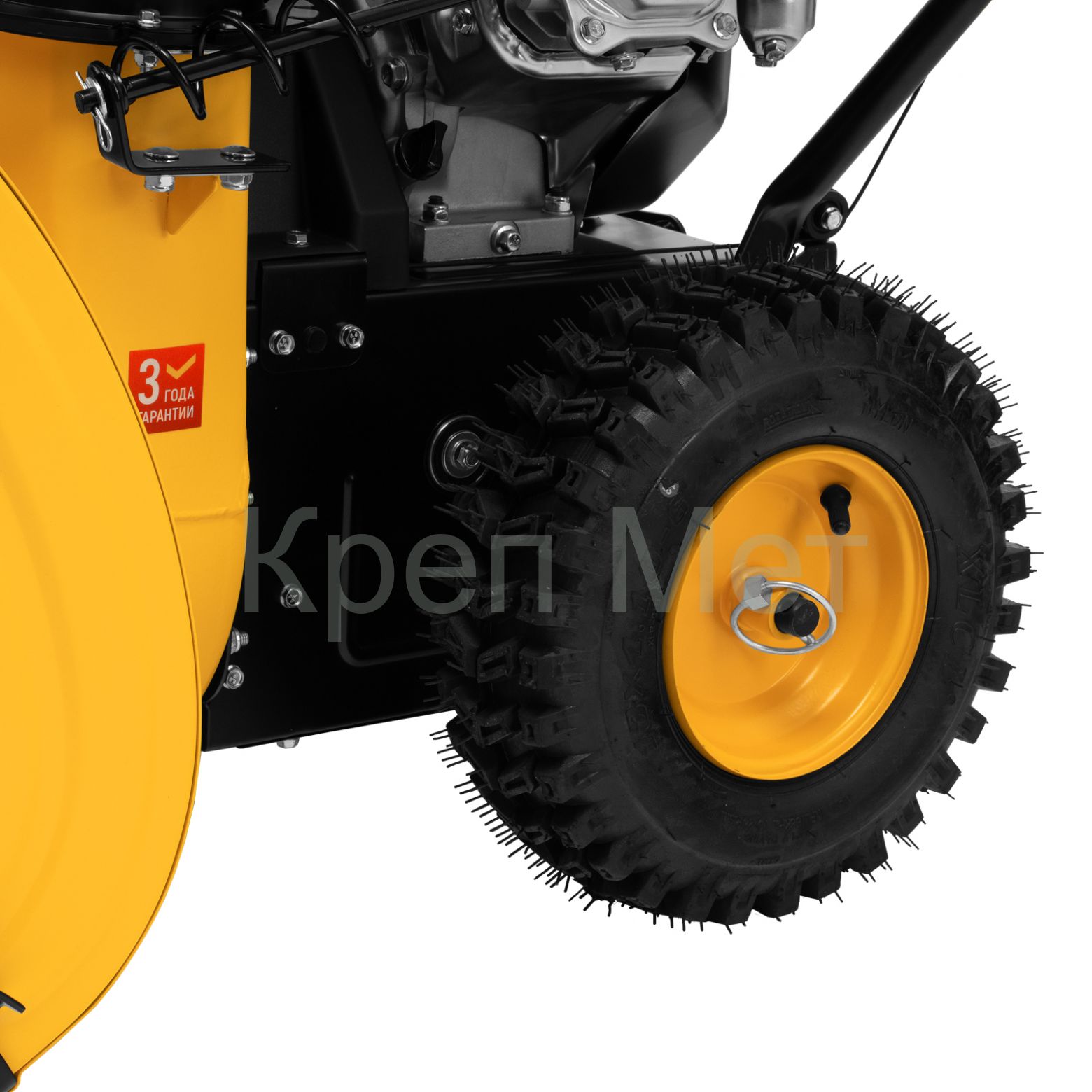 - Экономия сил и времени — снегоуборочная машина оснащена приводом на колеса, а значит, ее не придется толкать во время работы.