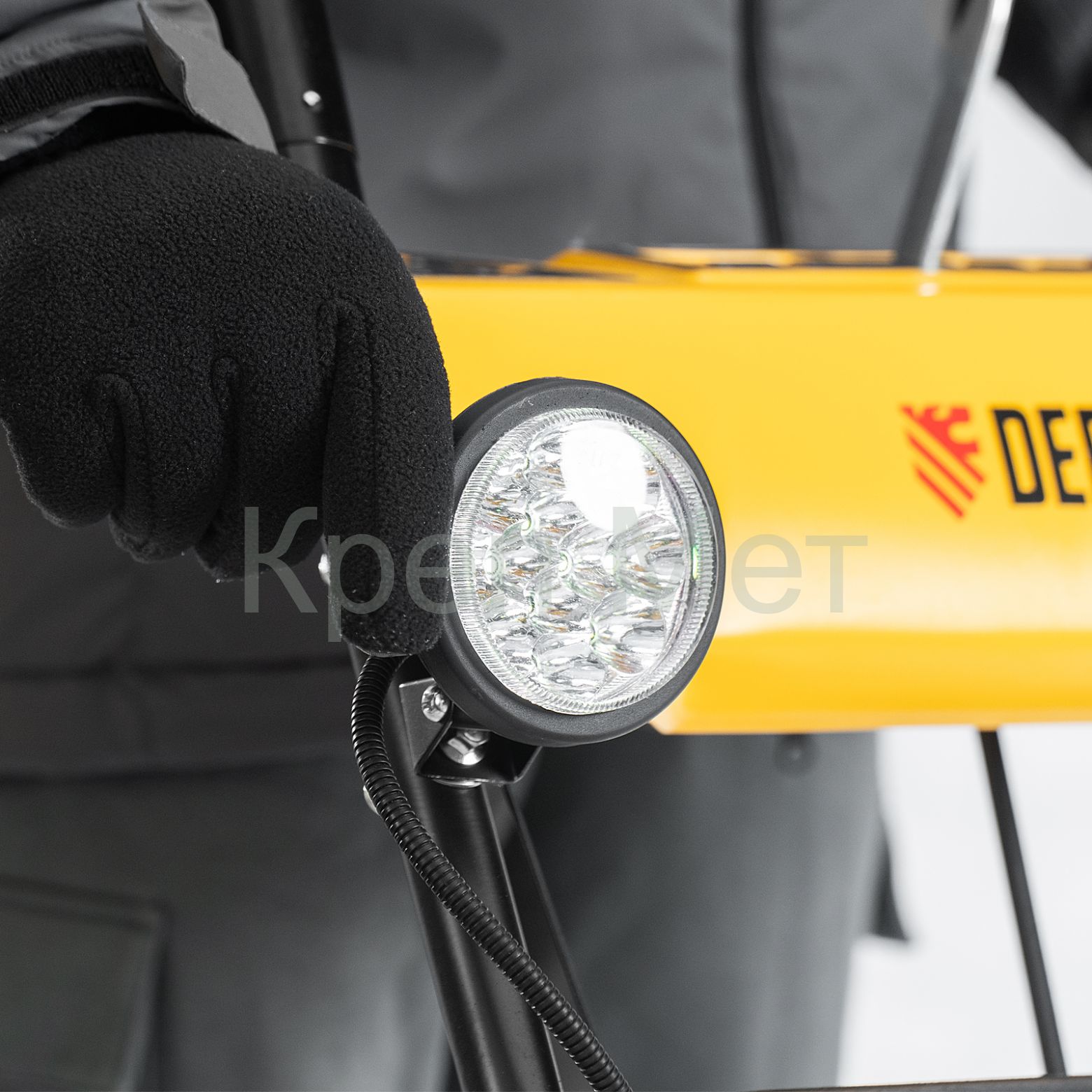 - Комфортная работа — рычаг поворота желоба позволяет легко выбрать желаемое направление выброса снега, а яркая LED-фара позволяет работать в условиях плохой видимости.