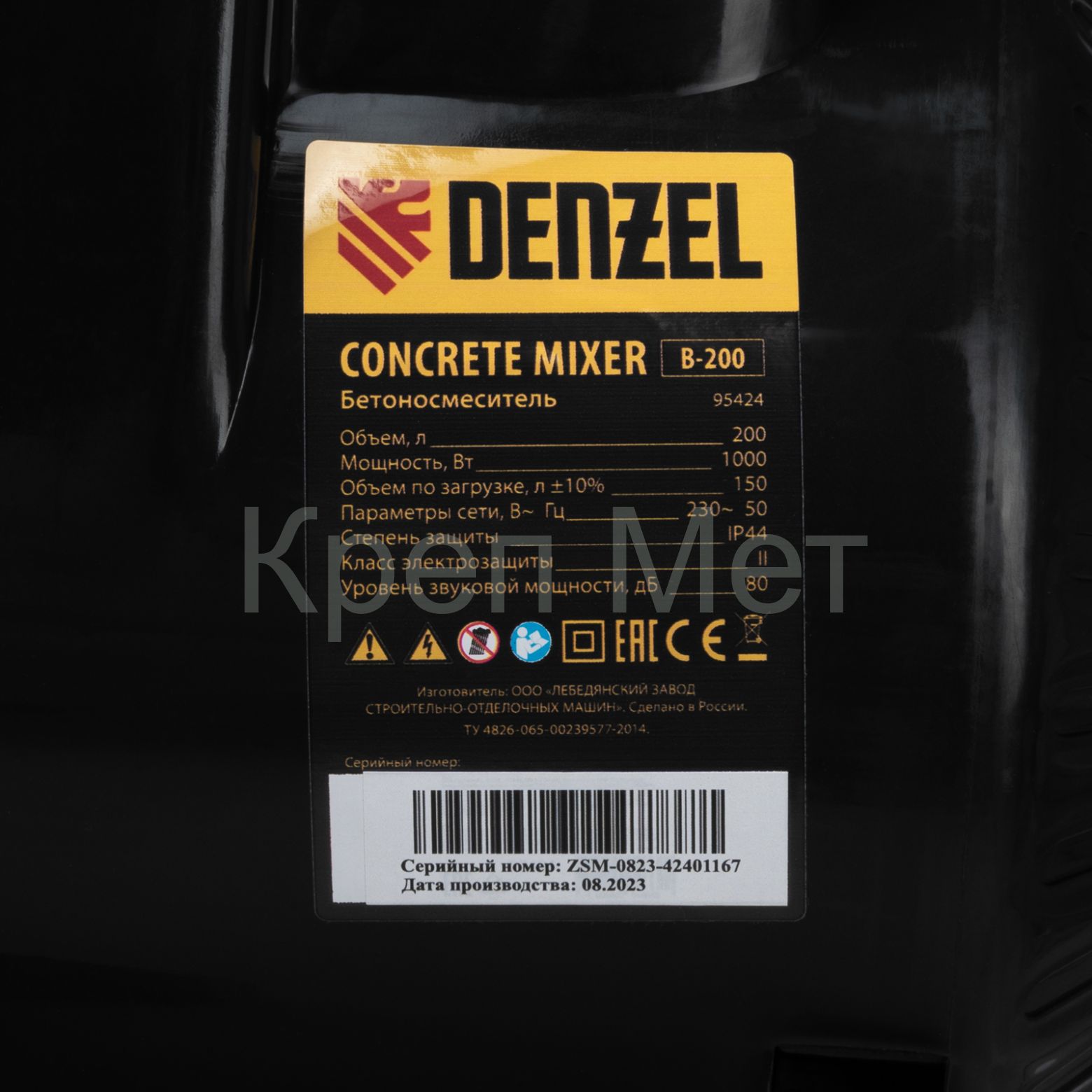 - Бетоносмеситель B-200, 1000 Вт, 200 л Denzel