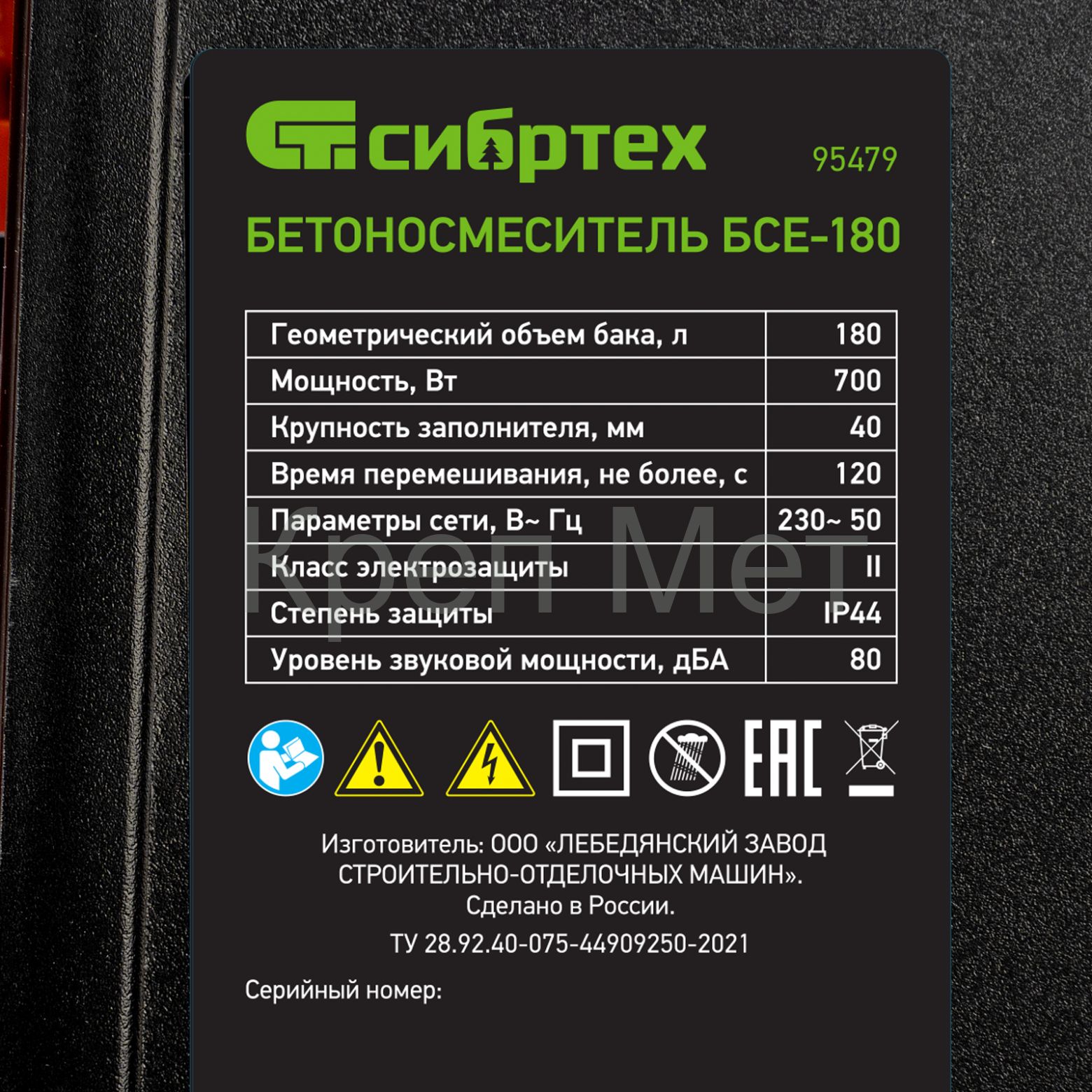 - Бетоносмеситель БСЕ-180, 180 л, 700 Вт Сибртех