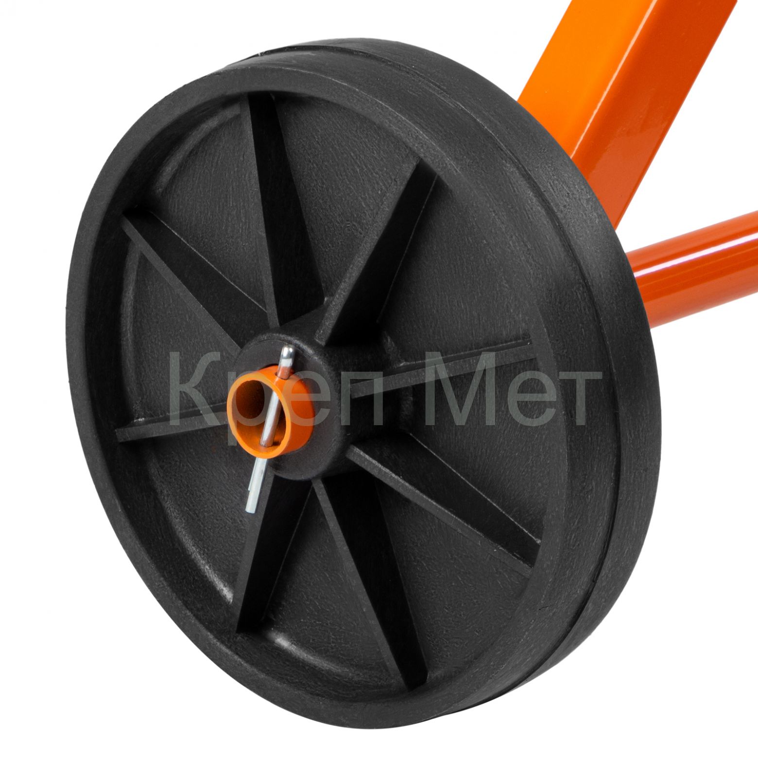 - Удобная транспортировка — колеса диаметром 20,5 см повышают маневренность бетоносмесителя и помогают без лишних усилий доставить его в нужное место.