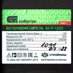 - Бетоносмеситель БСЛ-120П, 120 л, 500 Вт, полиамидный венец Сибртех