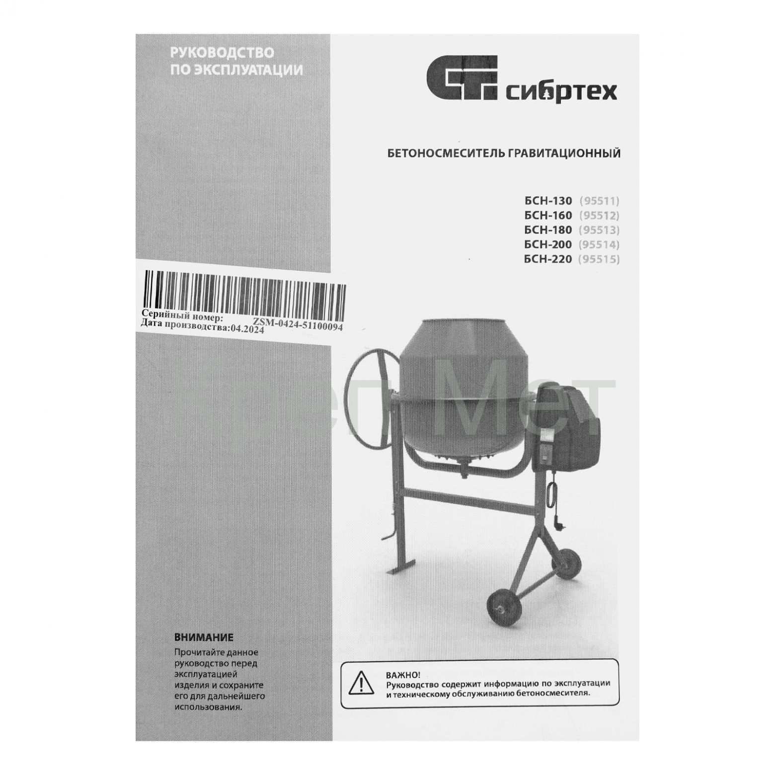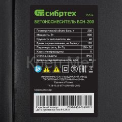 - Бетоносмеситель БСН-200, мощность 800 Вт Сибртех