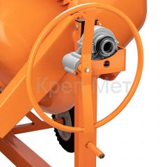 - Устойчивость — металлическая ножка с упором не дает бетоносмесителю опрокинуться во время работы.