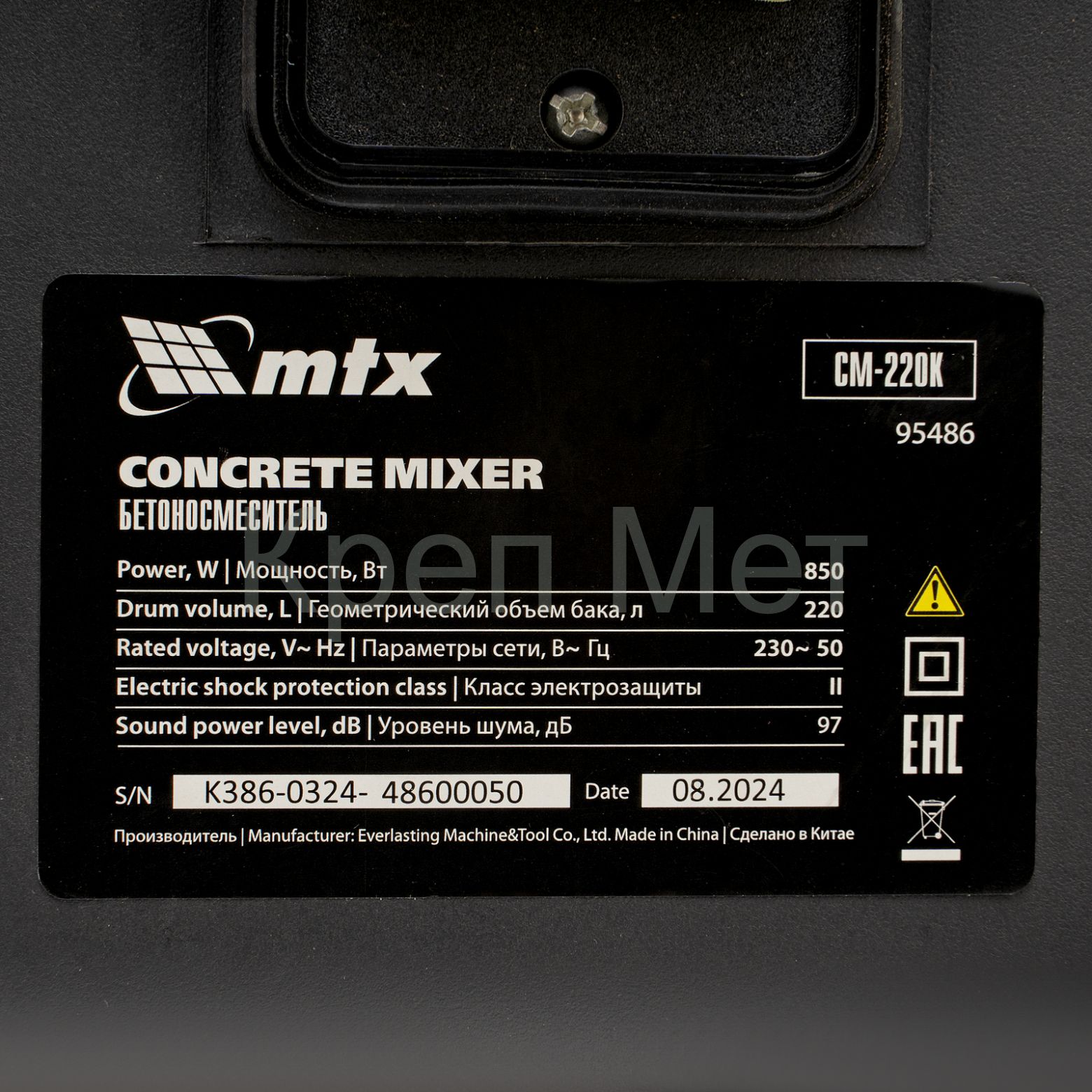Бетоносмеситель MTX CM-220K 95486 мощностью 850 Вт, с баком на 220 л, предназначен для приготовления бетонных смесей и штукатурных растворов. Оптимальное соотношение мощности двигателя и объема бака обеспечивает высокую скорость перемешивания и надлежащее качество полученной смеси. Максимальный объем готового раствора составляет 147 л. Бетоносмеситель будет полезен на строительной площадке.