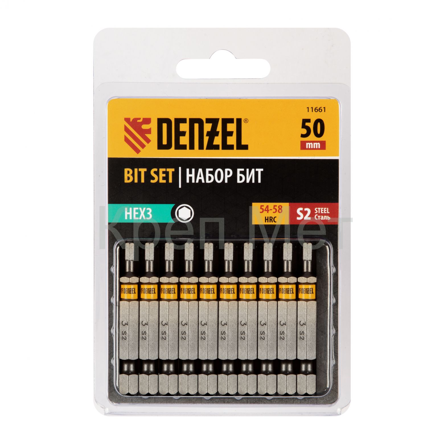Бита HEX 3х50, сталь S2, шестигранный профиль, 10 шт. Е 6,3 Denzel