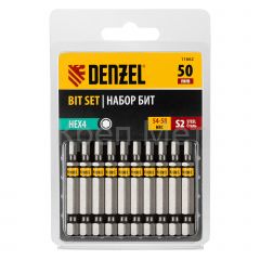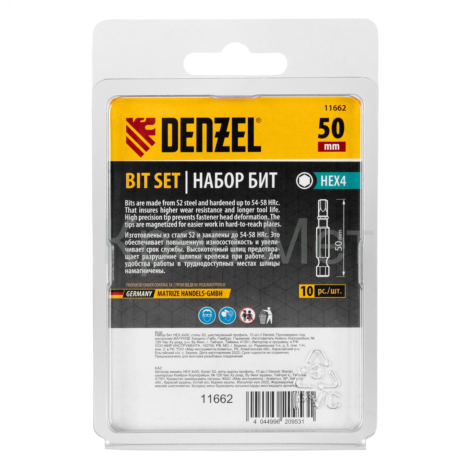 Бита HEX 4х50, сталь S2, шестигранный профиль, 10 шт. Е 6,3 Denzel