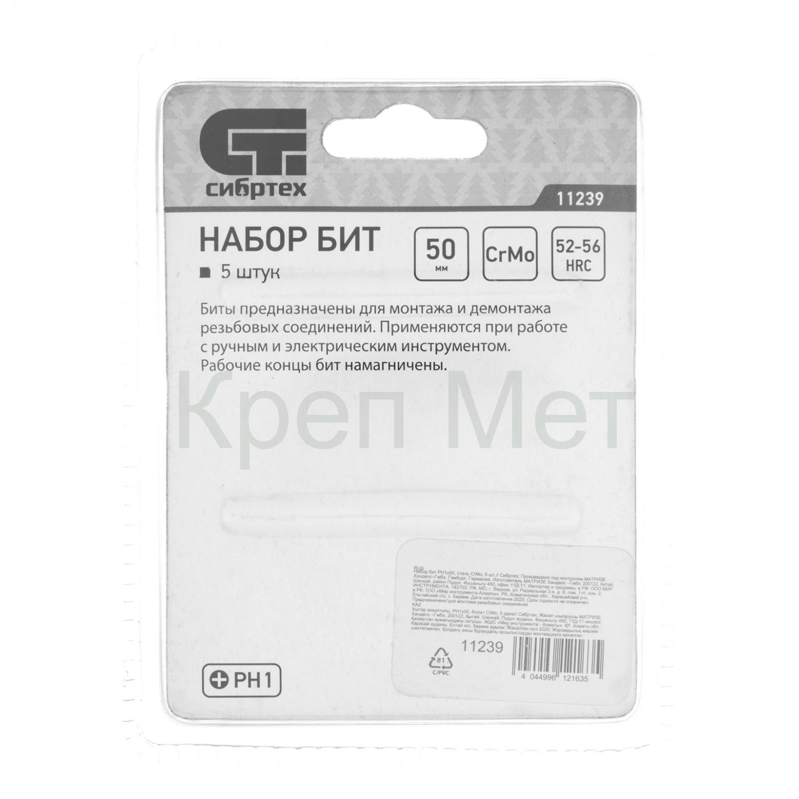 Бита PH1 x 50, сталь CrMo, 5 шт. Сибртех