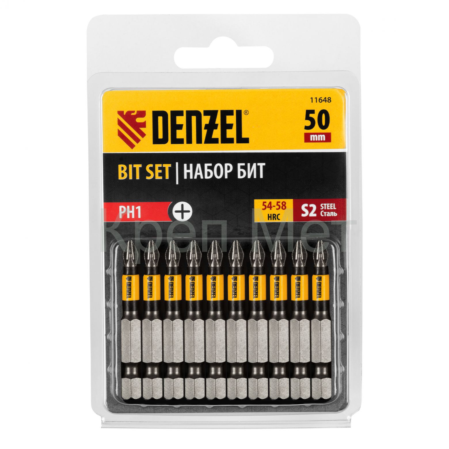 Бита PH1х50, сталь S2, цилиндр., 10 шт. Е 6,3 Denzel