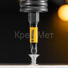 - Удобная эксплуатация — намагниченный шлиц облегчает работу и позволяет направлять шуруповерт с насаженным крепежом одной рукой, а другой придерживать закрепляемую деталь.