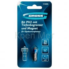 - Бита PH2 x 25 мм с ограничителем и магнитом, для ГКЛ, S2 Gross