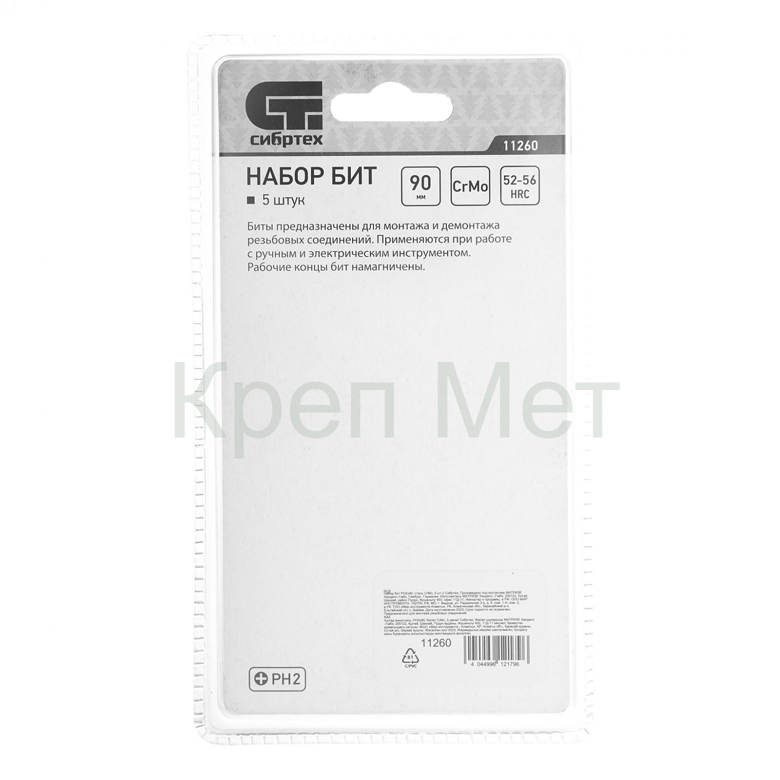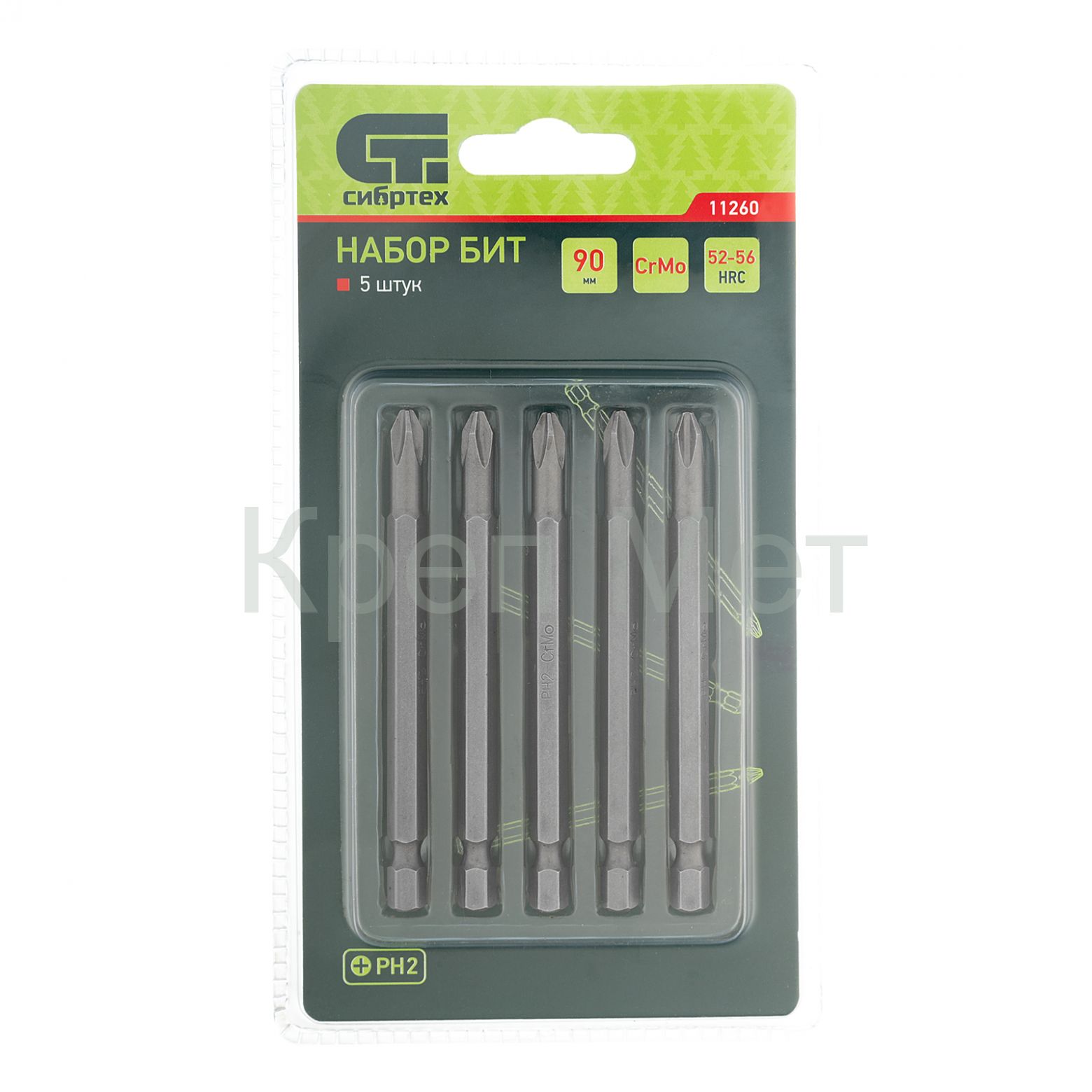 Бита PH2 x 90, сталь CrMo, 5 шт. Сибртех