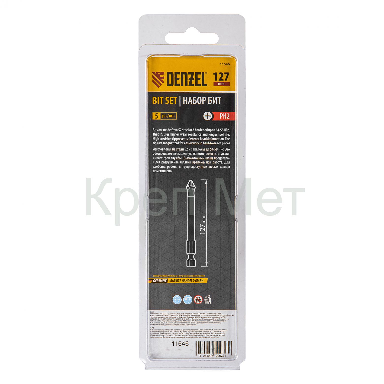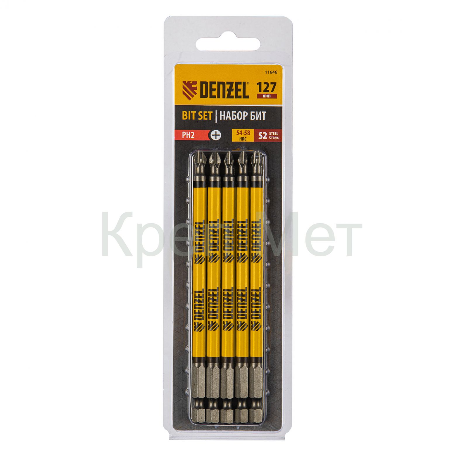 Бита PH2х127, сталь S2, цилиндр., 5шт. Е 6,3 Denzel
