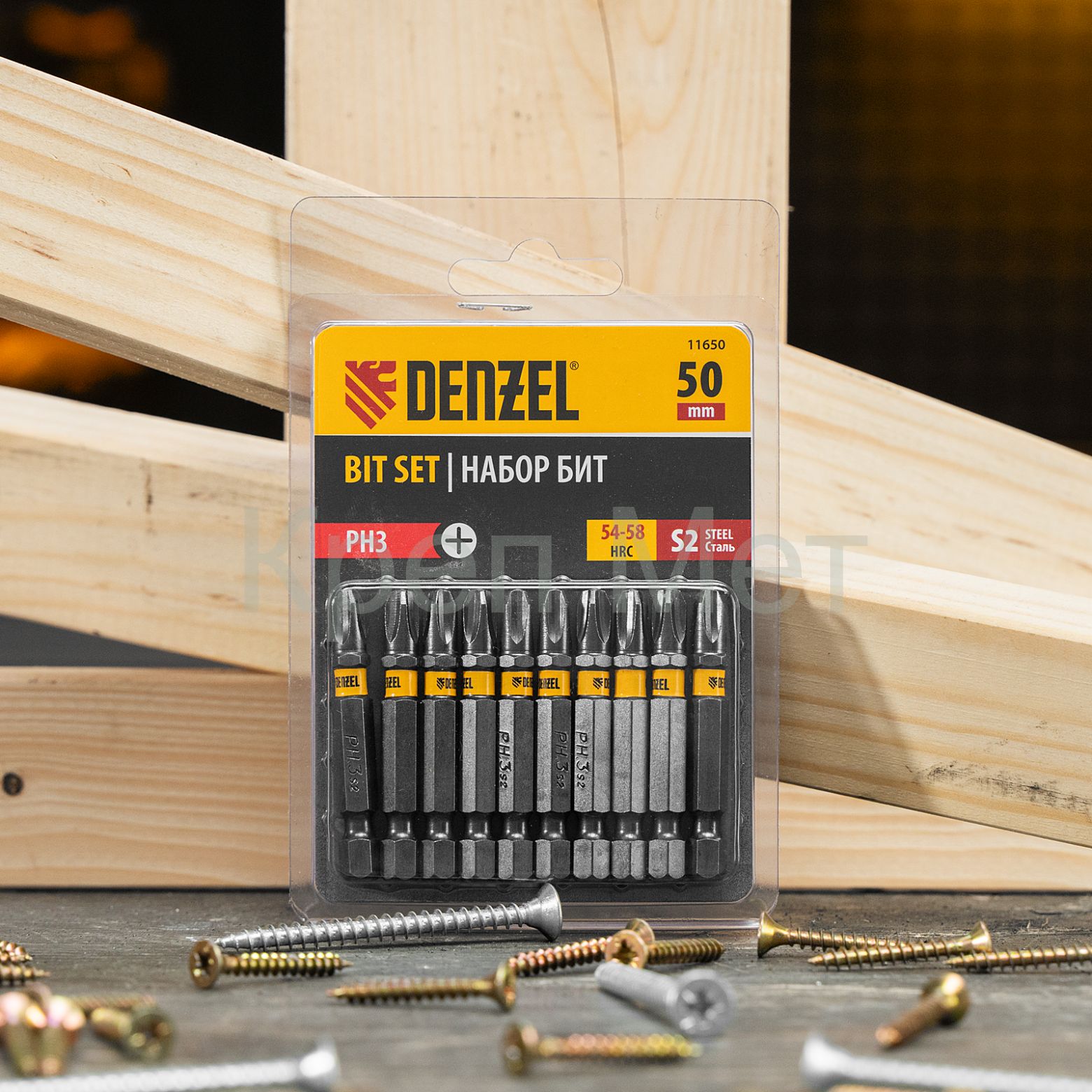 Бита PH3х50, сталь S2, шестигранный профиль, 10 шт. Е 6,3 Denzel