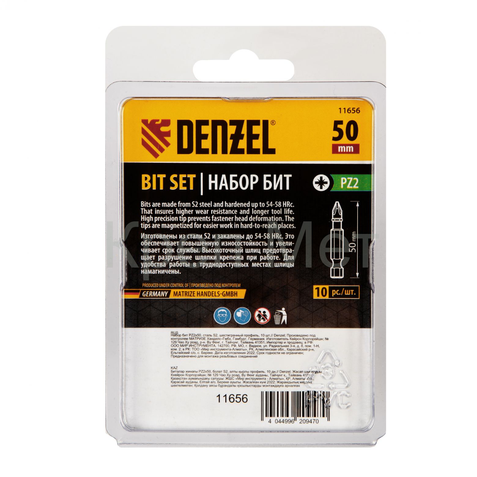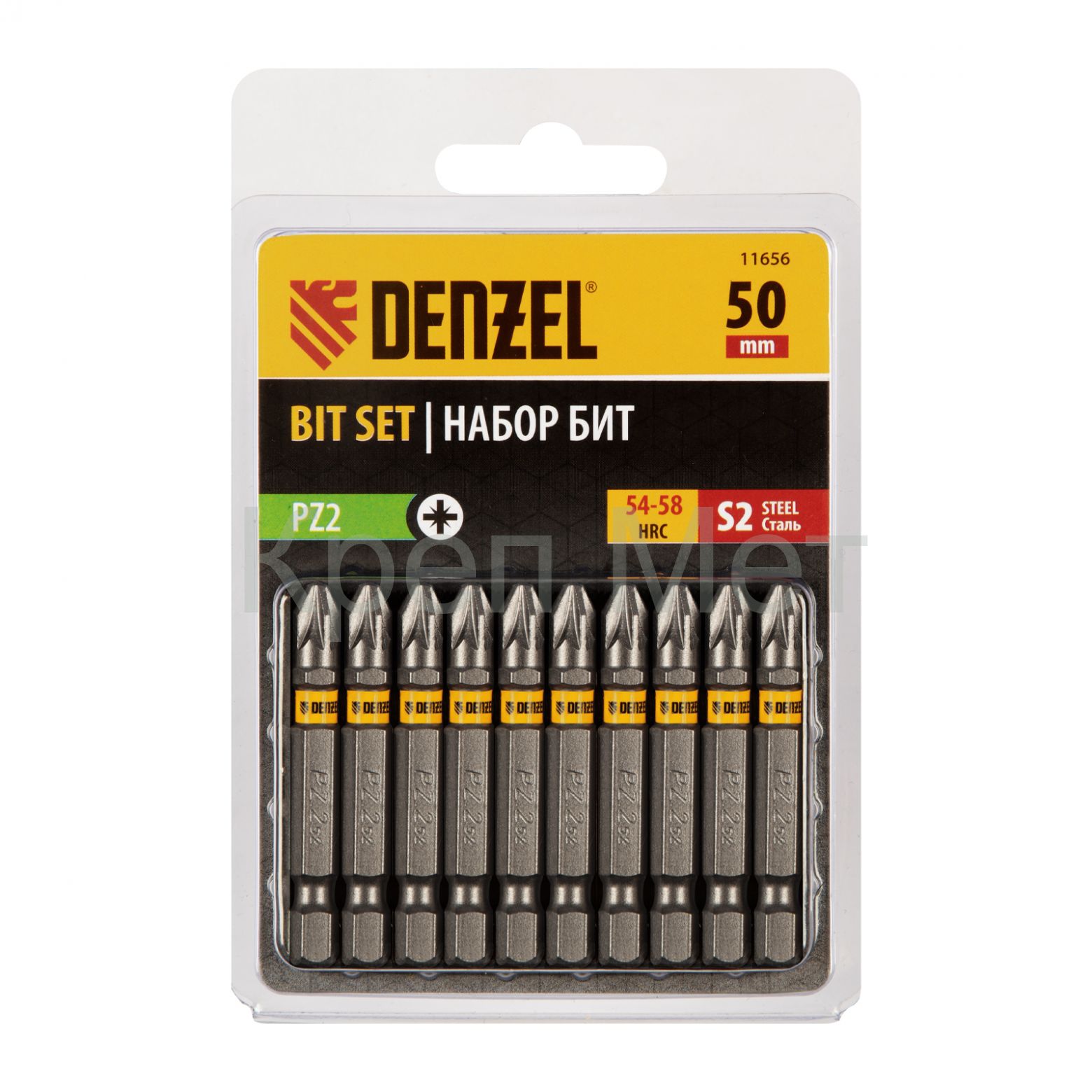 Бита PZ2х50, сталь S2, шестигранный профиль, 10 шт. Е 6,3 Denzel