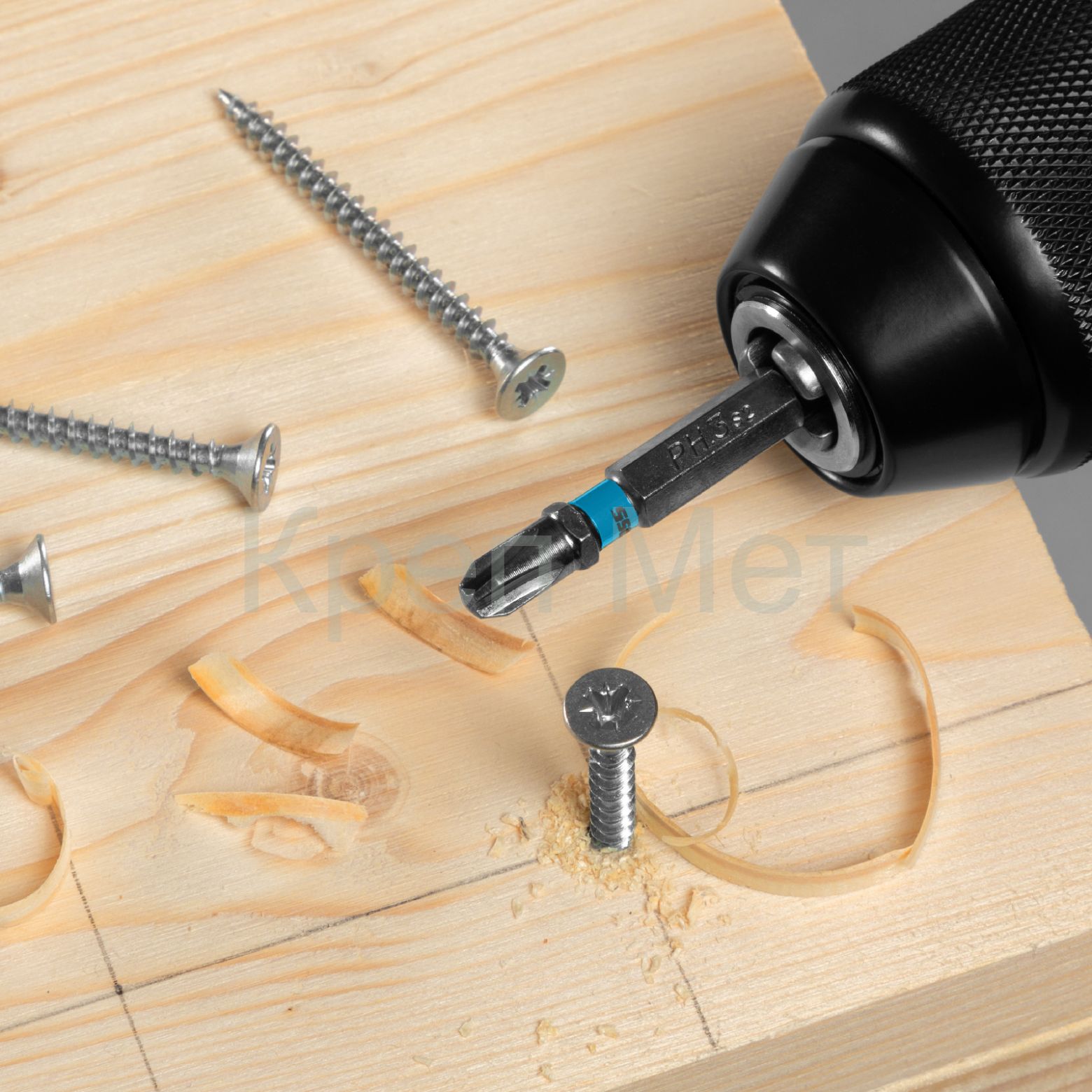 • Износостойкость и долговечность — биты изготовлены из японской легированной стали S2 твердостью 54-58 HRC, поэтому долго сохраняют рабочие свойства.