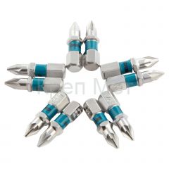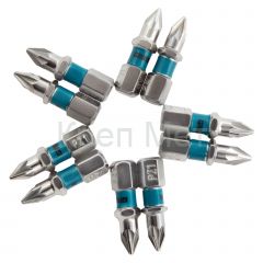 - Износостойкость и долговечность — биты изготовлены из японской легированной стали S2 твердостью 54-58 HRC, поэтому долго сохраняют рабочие свойства.