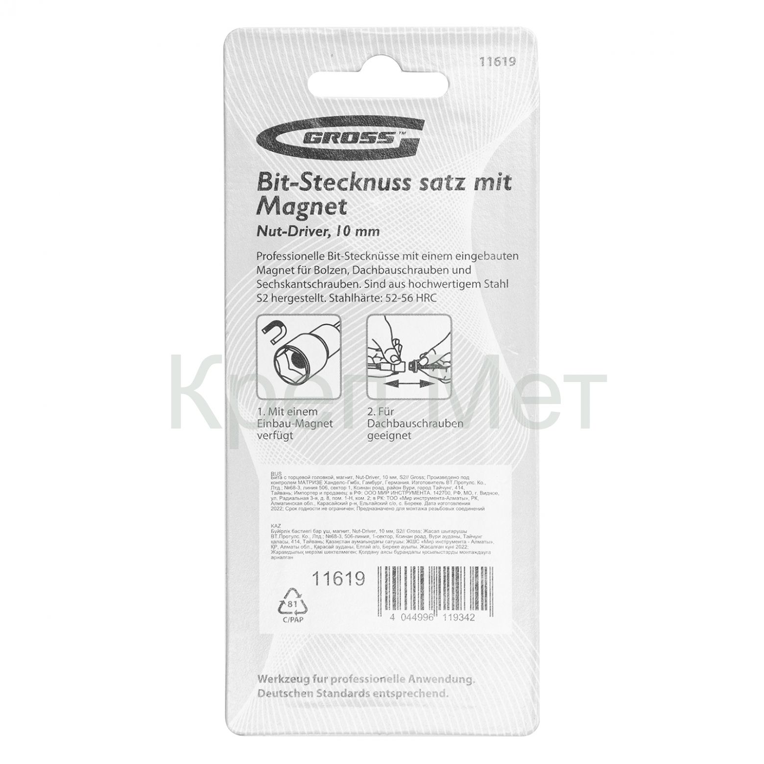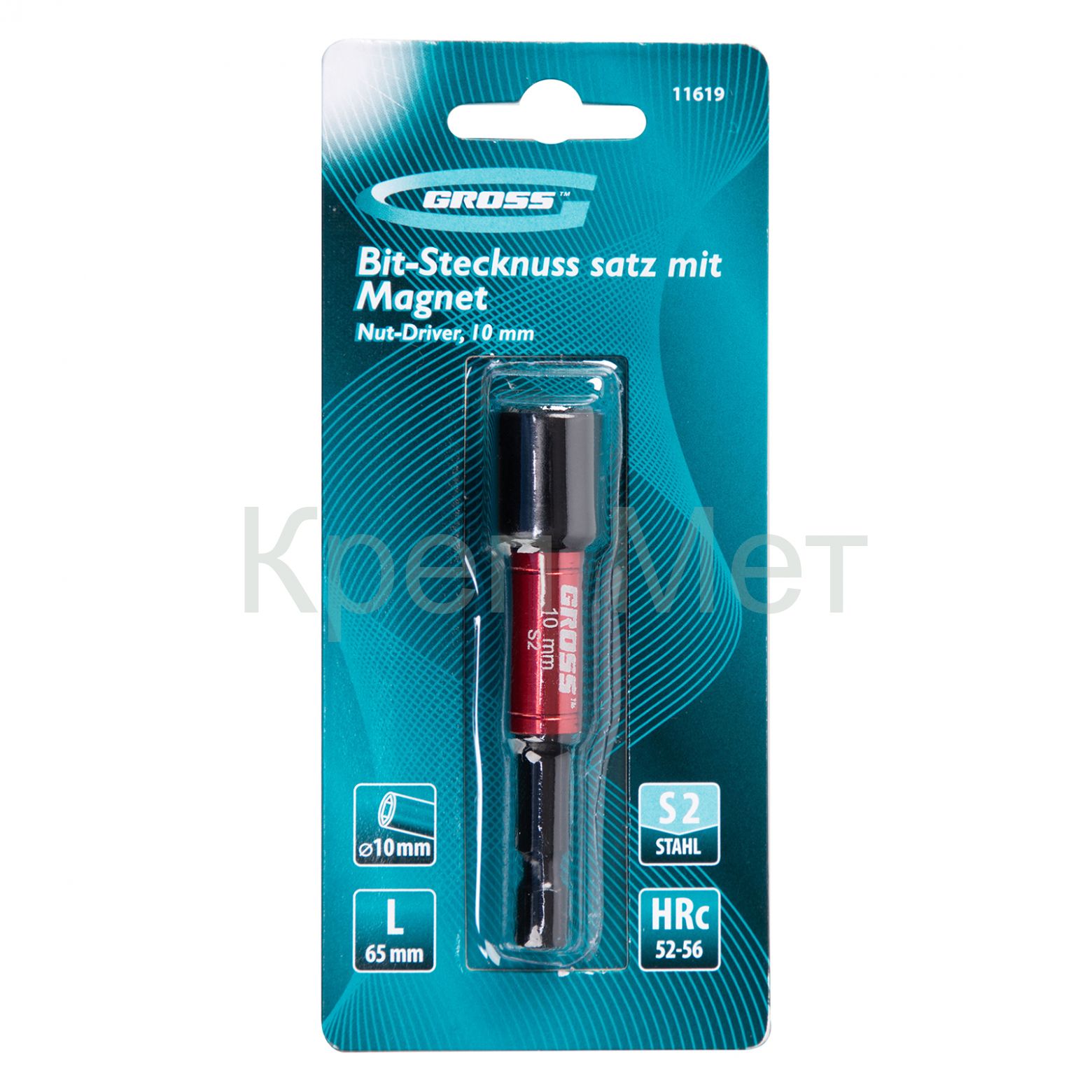 - Бита с торцевой головкой, магнит. Nut-Driver, 10 мм, S2 Gross