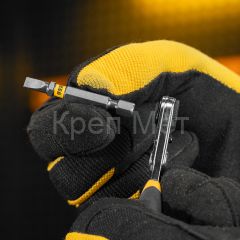 - Высокоточное исполнение — оптимальная геометрия шлица и максимальный контроль на производстве в Тайване позволили добиться выверенности каждой биты и предотвратить проскальзывание рабочей части в головке крепежа.
