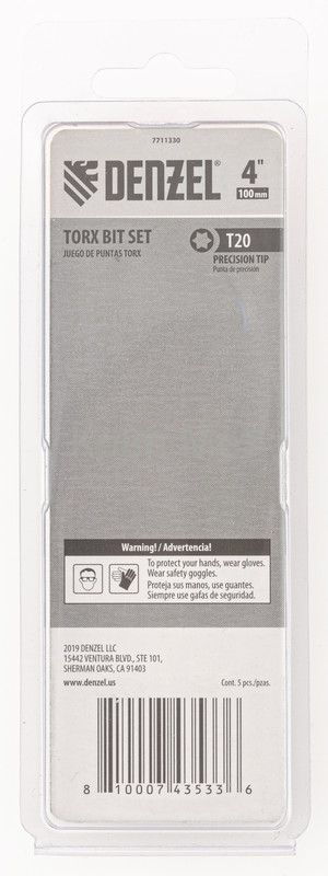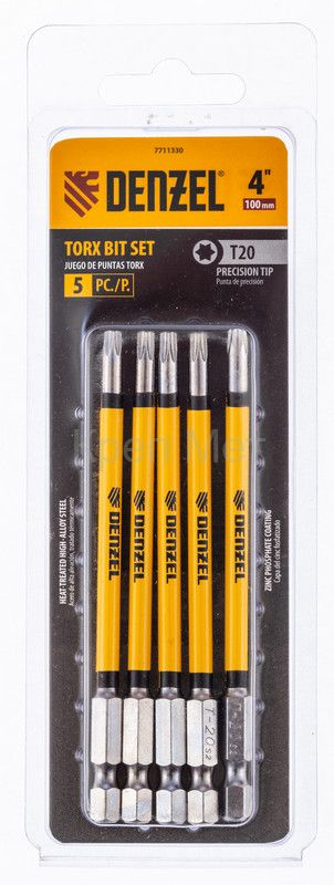 Набор бит TORX 10 х 50 мм Denzel включает в себя 5 насадок с хвостовиками 1/4 дюйма из стали S2 для работы с шуруповертами. Шлиц в форме звезды служит для быстрого монтажа и демонтажа винтов при сборке бытовой техники и электроприборов. Набор универсален и подходит как для бытового, так и для профессионального применения. Благодаря конструктивной особенности лучи «звезды» надежно сцепляются с крепежом, нагрузка равномерно распределяется на все грани, это снижает риск соскальзывания биты и обеспечивает высокую точность работ.